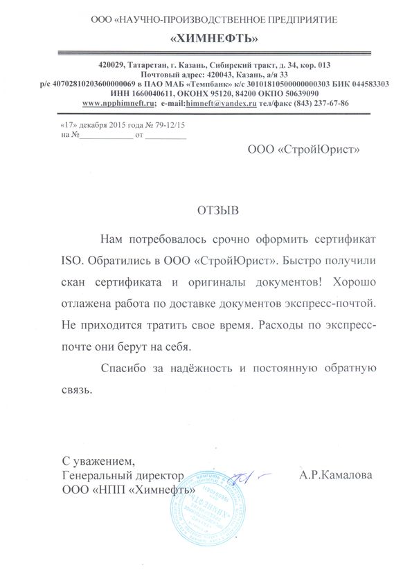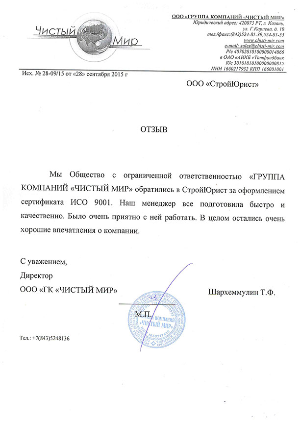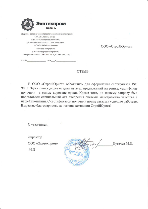 Отзывы клиентов "СтройЮрист" по ISO в Балашихе