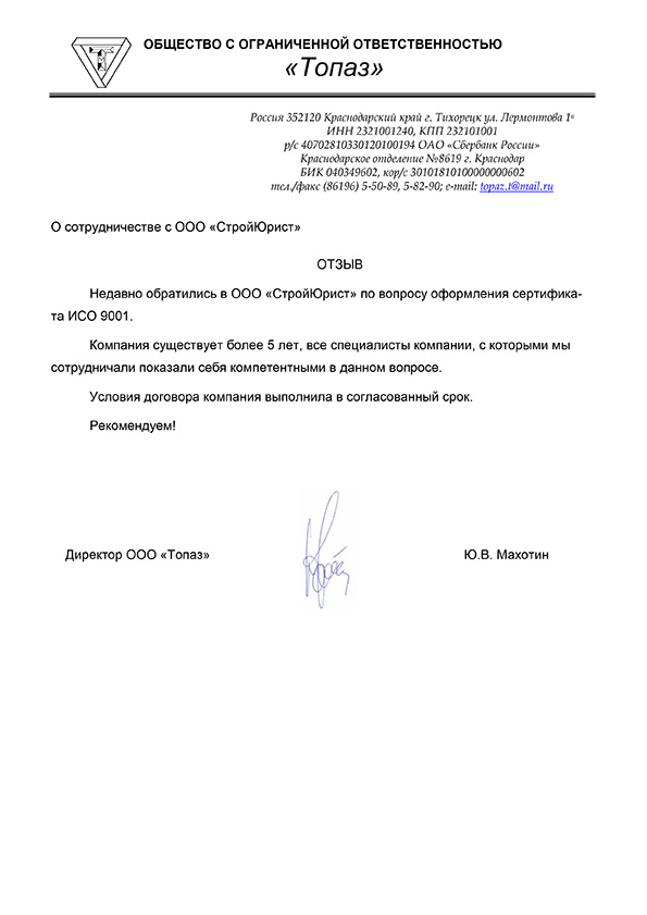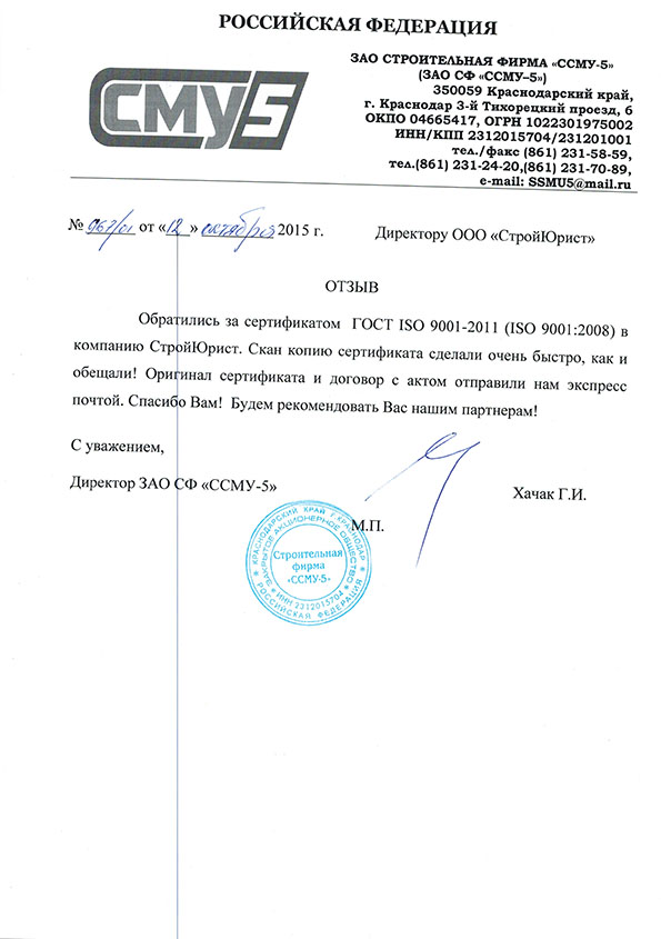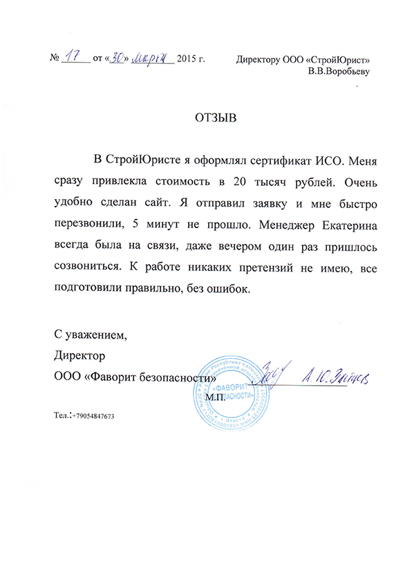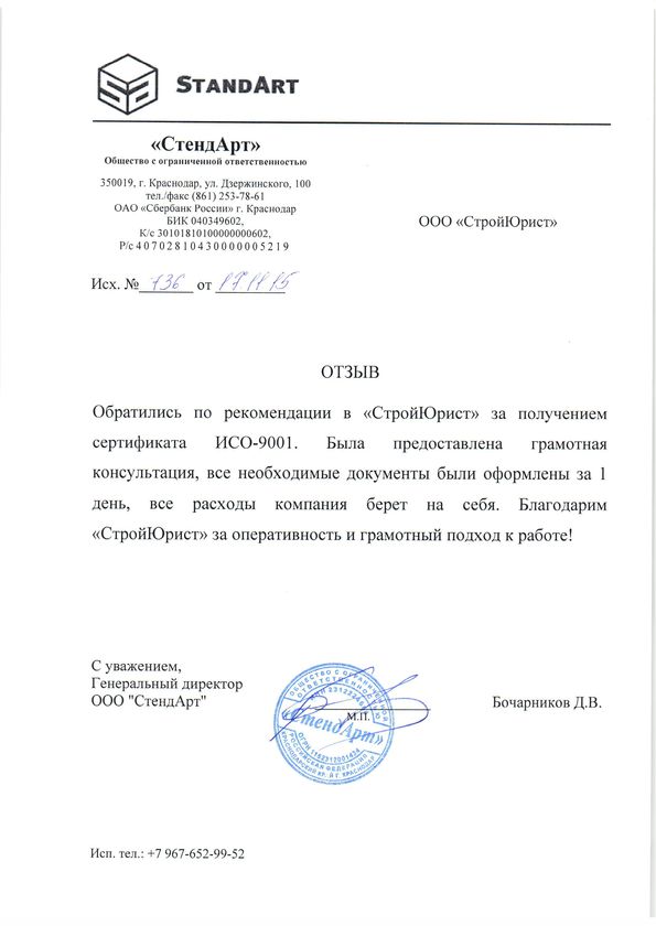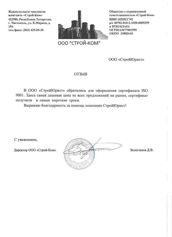 Отзывы клиентов "СтройЮрист" по ISO в Балашихе