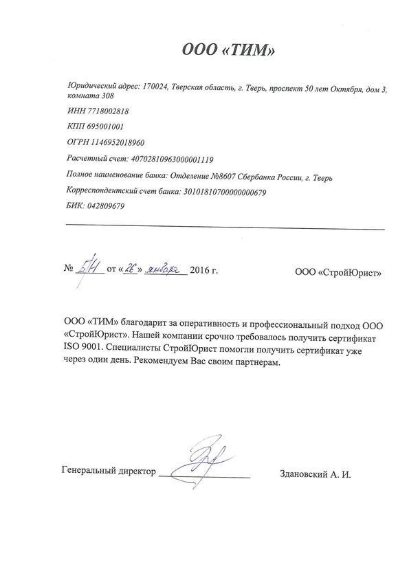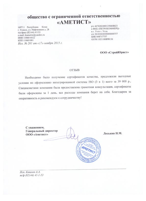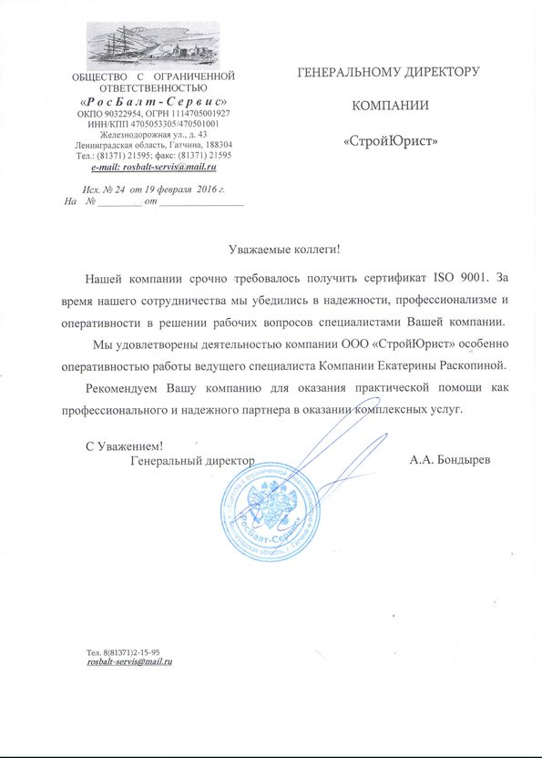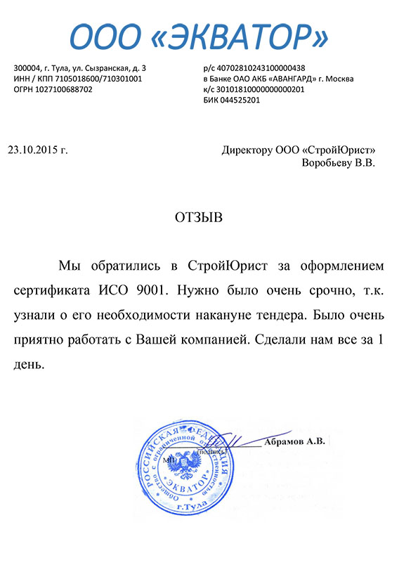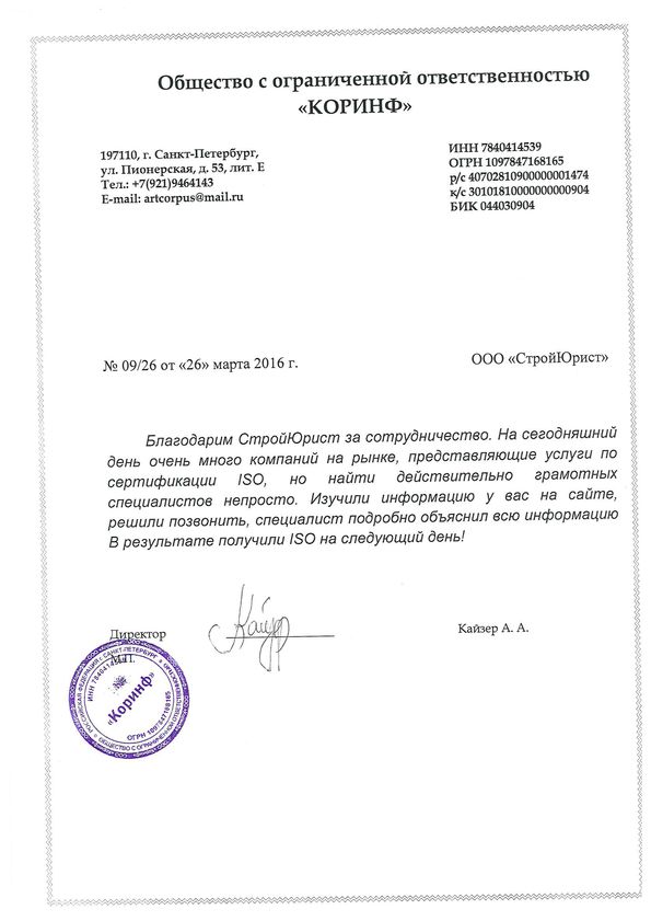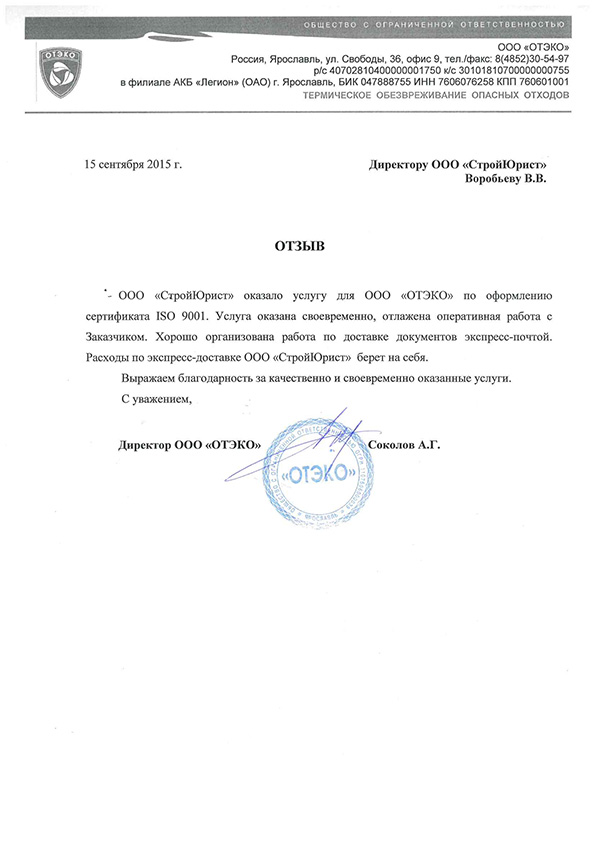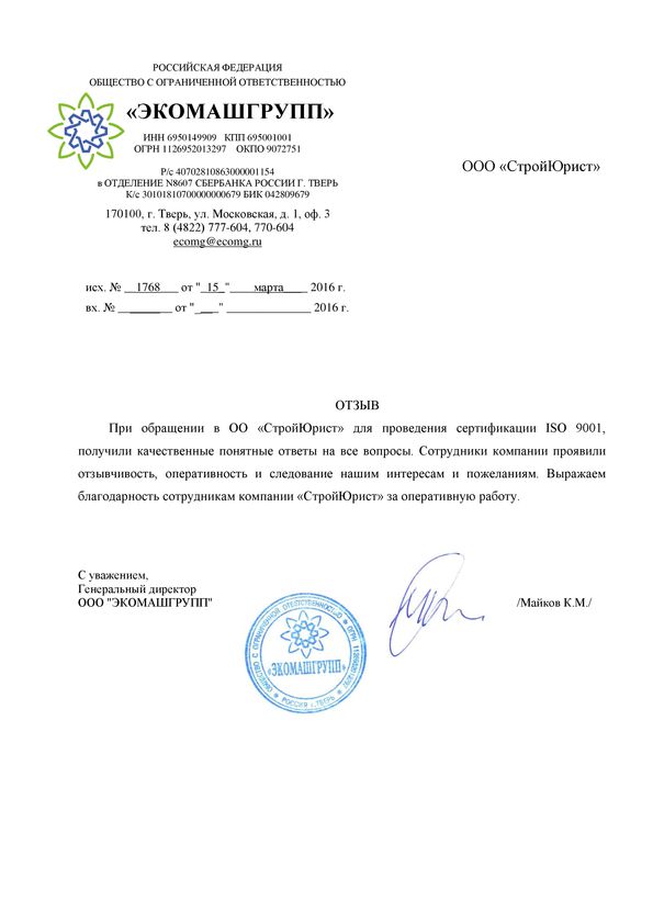 Отзывы клиентов "СтройЮрист" по ISO в Балашихе
