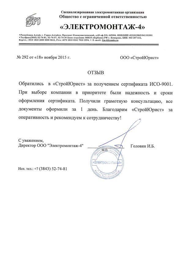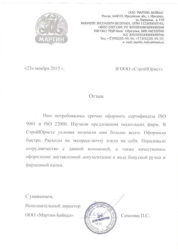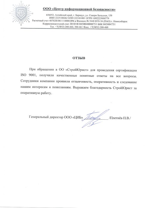 Отзывы клиентов "СтройЮрист" по ISO в Балашихе
