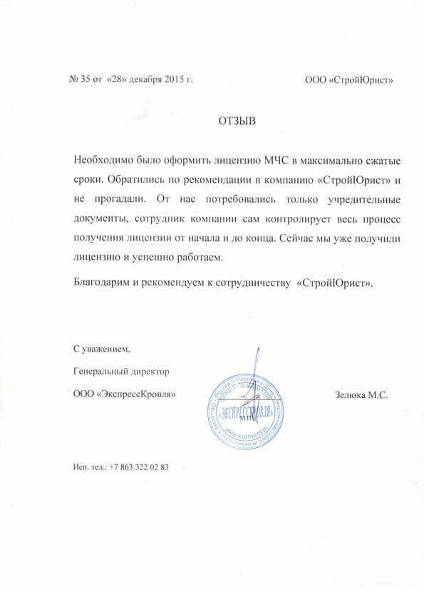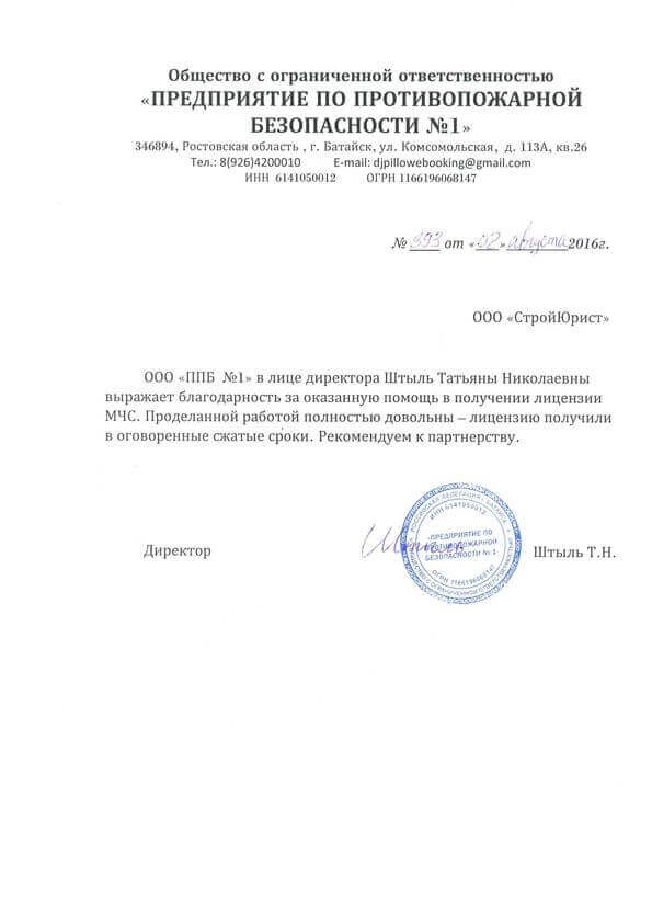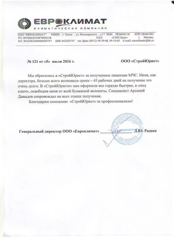 Отзывы клиентов "СтройЮрист" по лицензированию МЧС в Балашихе