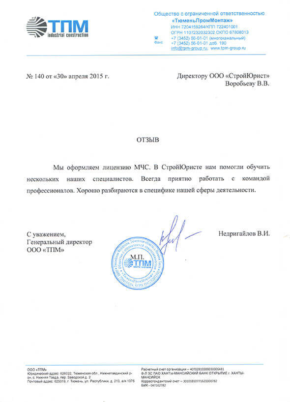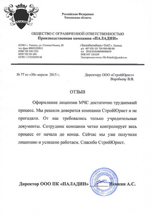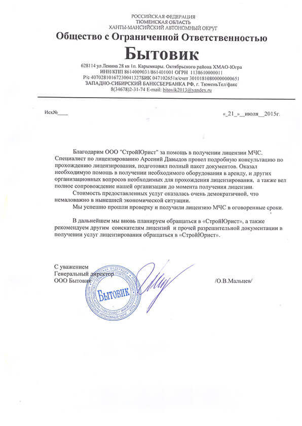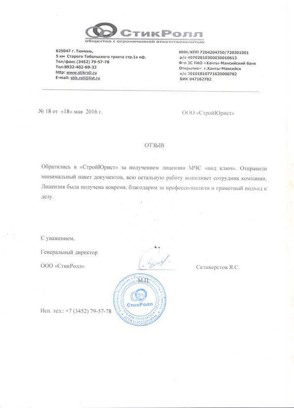 Отзывы клиентов "СтройЮрист" по лицензированию МЧС в Балашихе