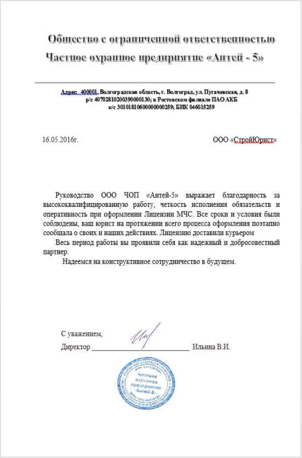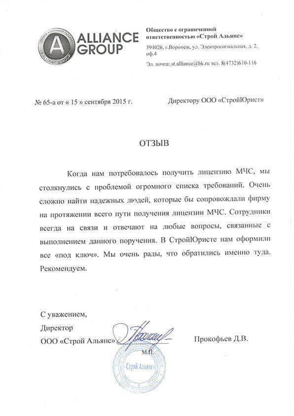 Отзывы клиентов "СтройЮрист" по лицензированию МЧС в Балашихе