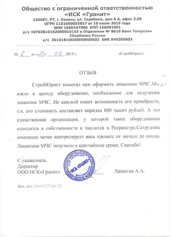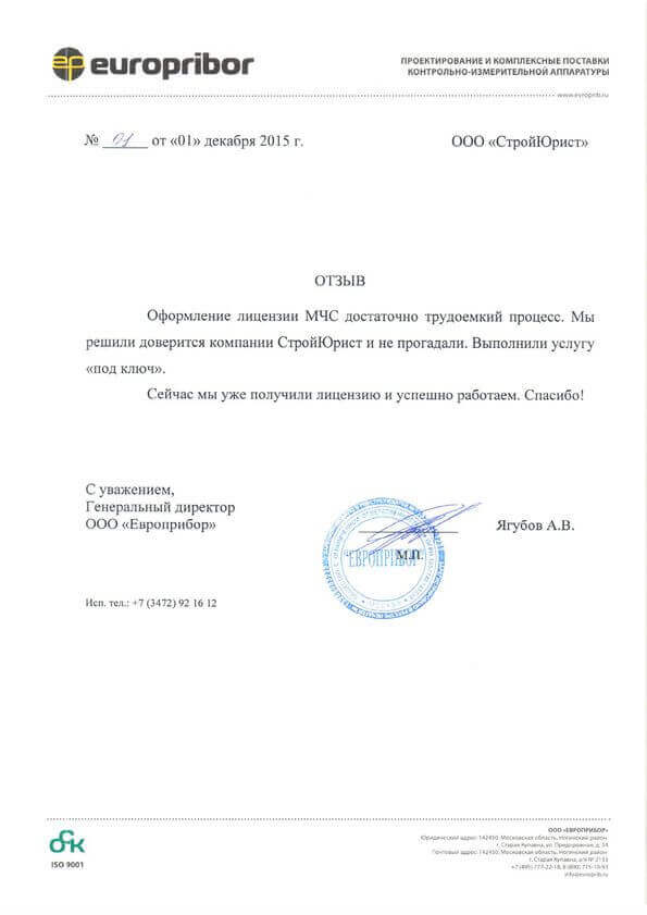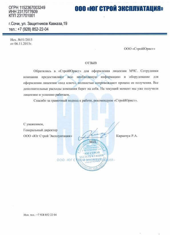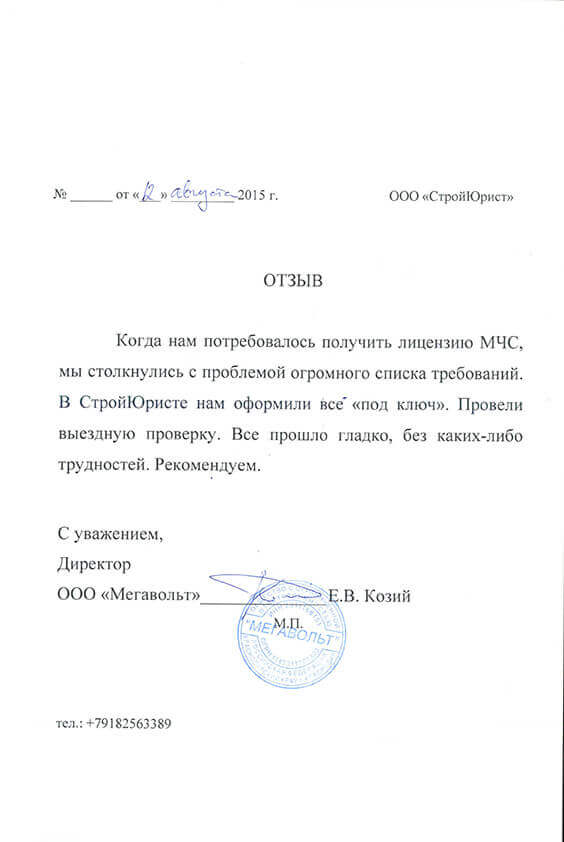 Отзывы клиентов "СтройЮрист" по лицензированию МЧС в Балашихе