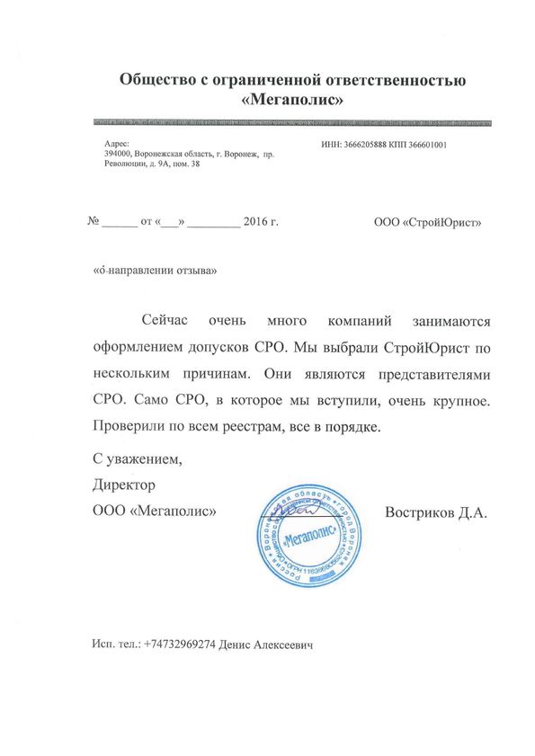 Отзывы клиентов "СтройЮрист" по вступлению в СРО в Балашихе