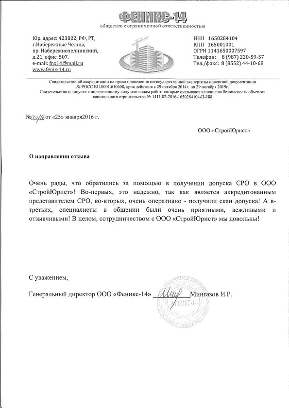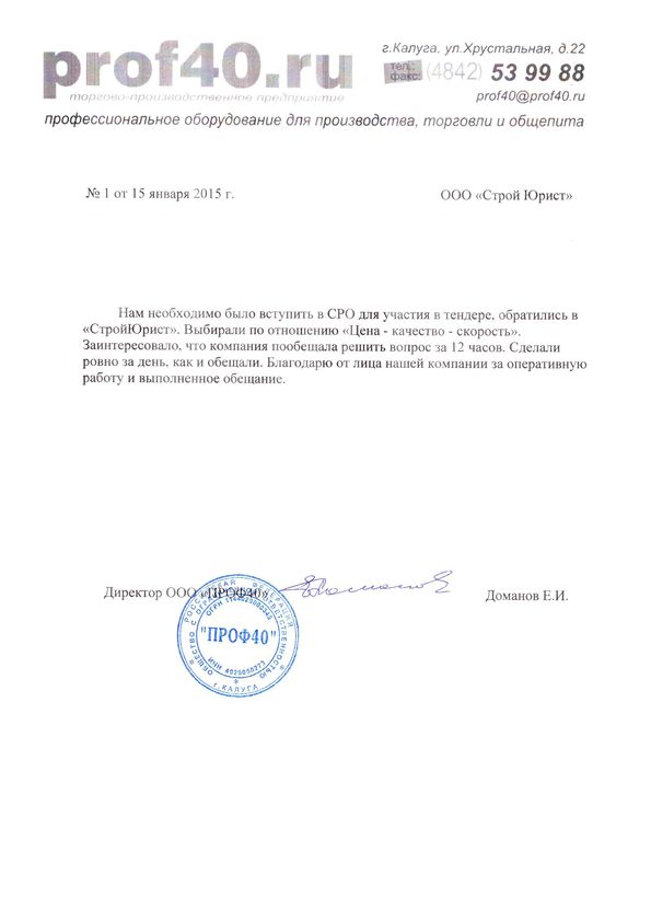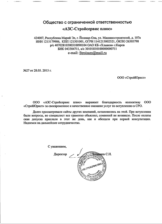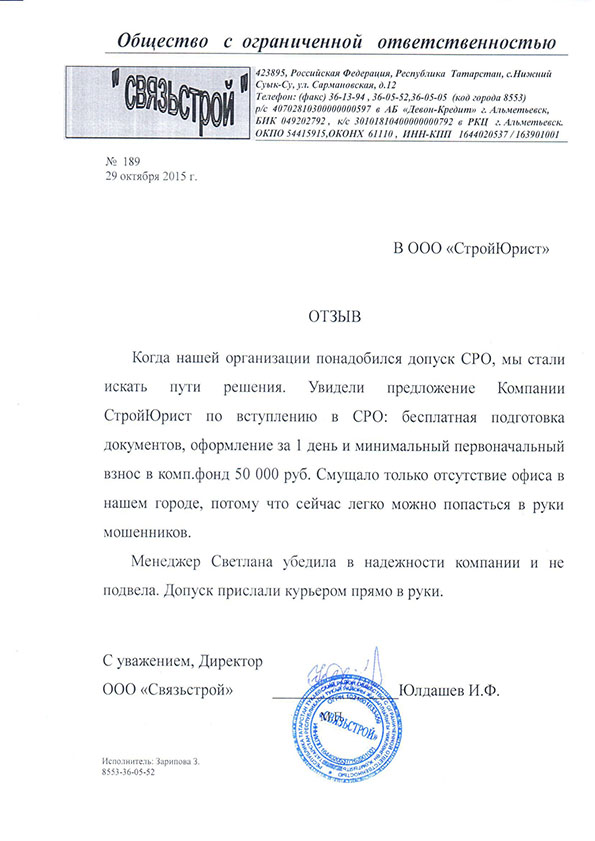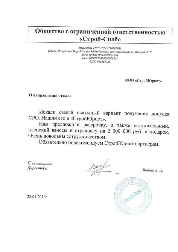 Отзывы клиентов "СтройЮрист" по вступлению в СРО в Балашихе