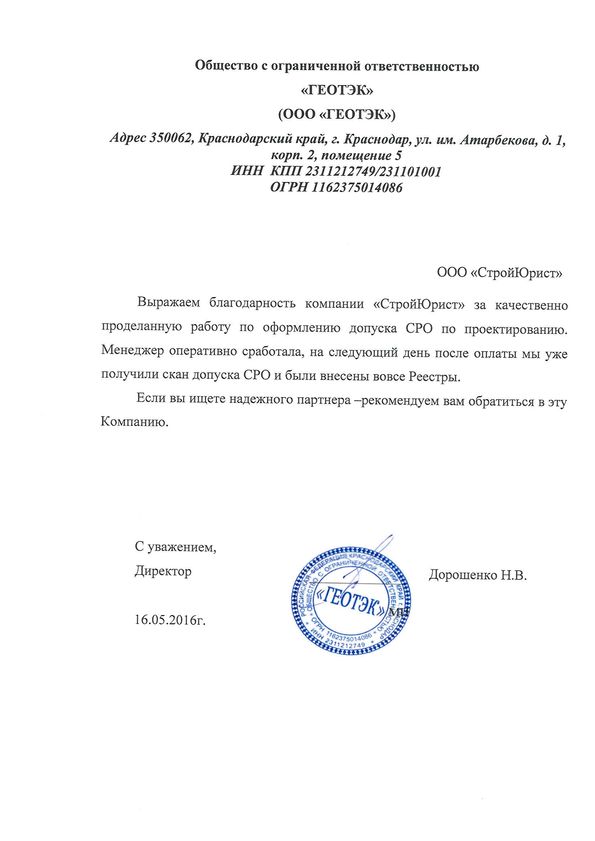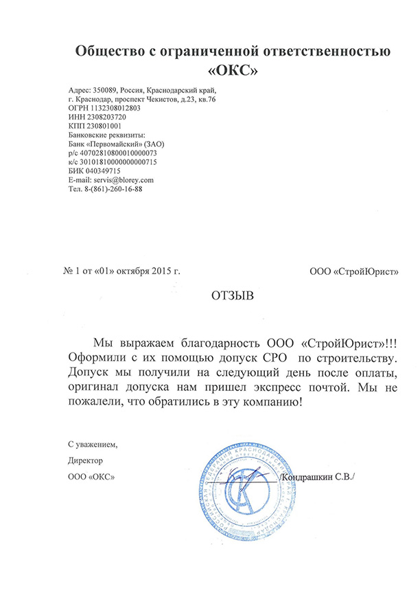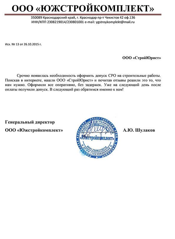 Отзывы клиентов "СтройЮрист" по вступлению в СРО в Балашихе
