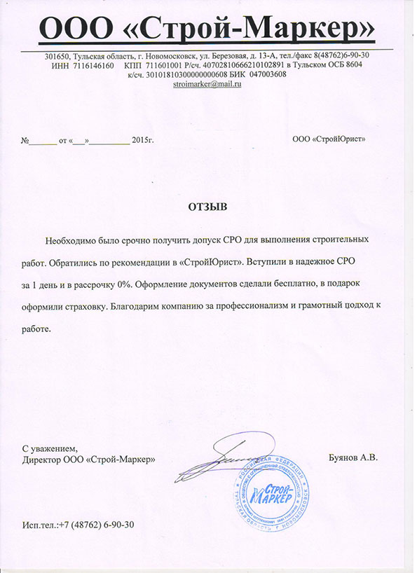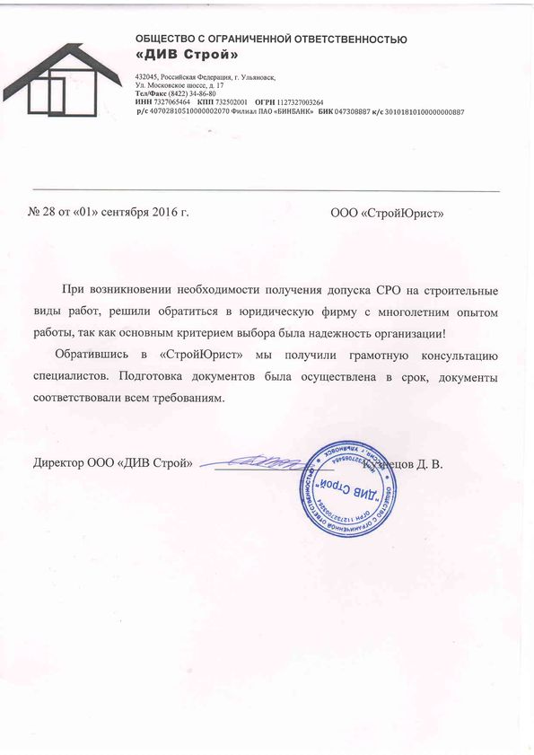 Отзывы клиентов "СтройЮрист" по вступлению в СРО в Балашихе