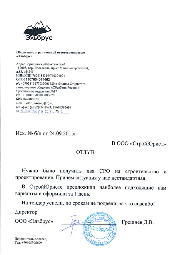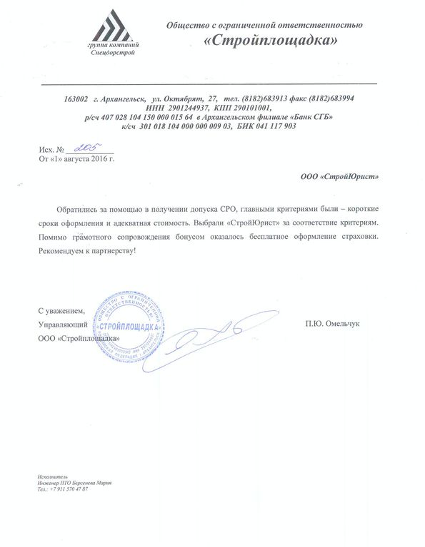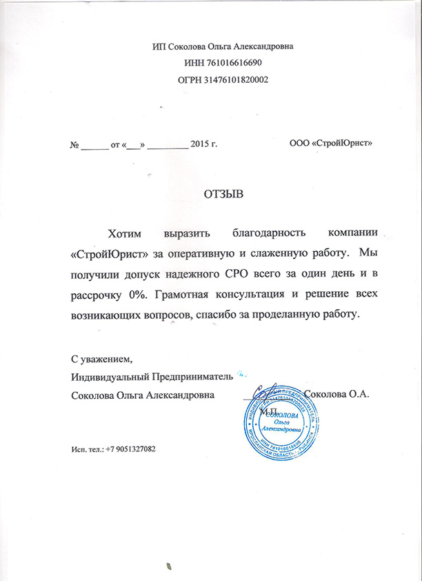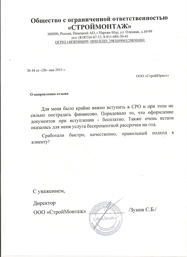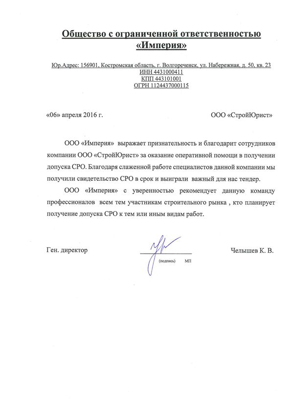 Отзывы клиентов "СтройЮрист" по вступлению в СРО в Балашихе