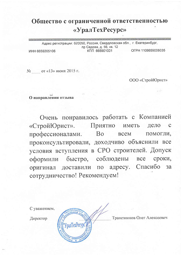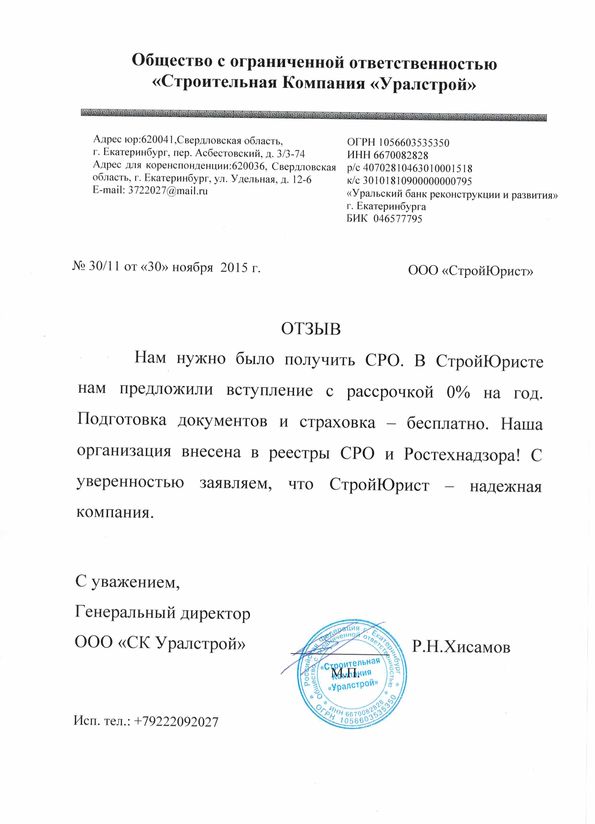 Отзывы клиентов "СтройЮрист" по вступлению в СРО в Балашихе