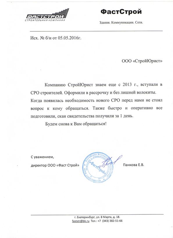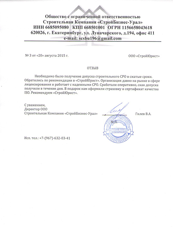 Отзывы клиентов "СтройЮрист" по вступлению в СРО в Балашихе