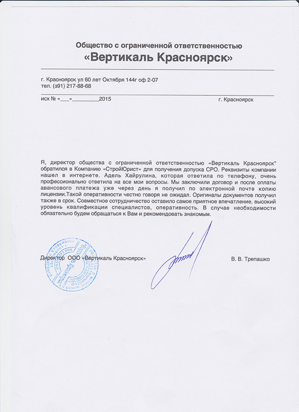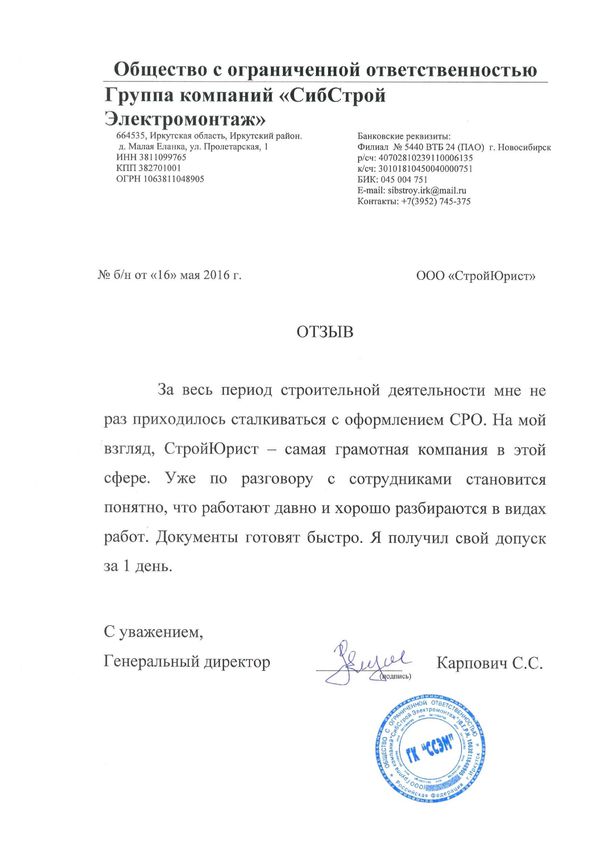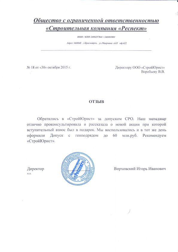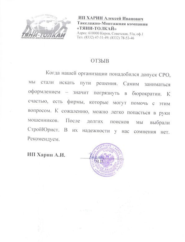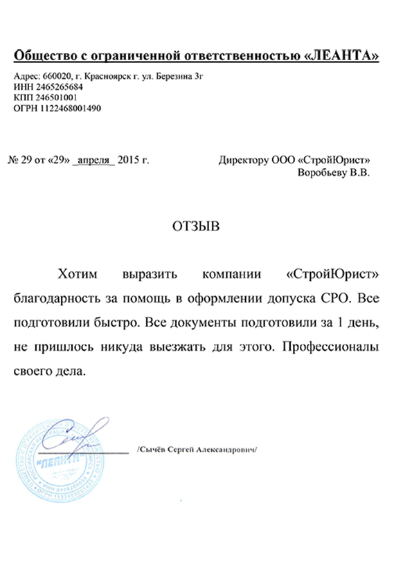 Отзывы клиентов "СтройЮрист" по вступлению в СРО в Балашихе
