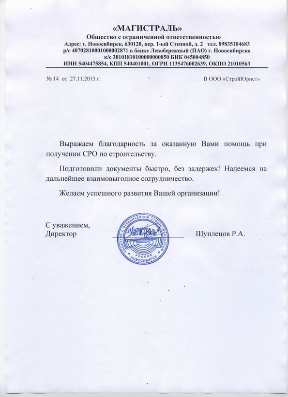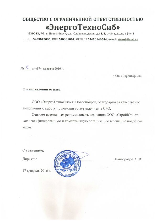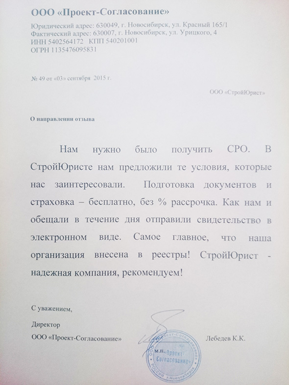 Отзывы клиентов "СтройЮрист" по вступлению в СРО в Балашихе