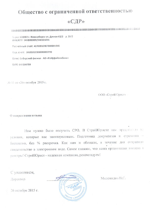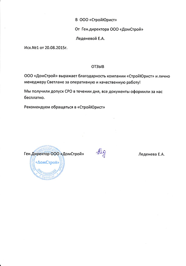 Отзывы клиентов "СтройЮрист" по вступлению в СРО в Балашихе