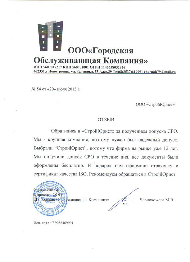 Отзывы клиентов "СтройЮрист" по вступлению в СРО в Балашихе