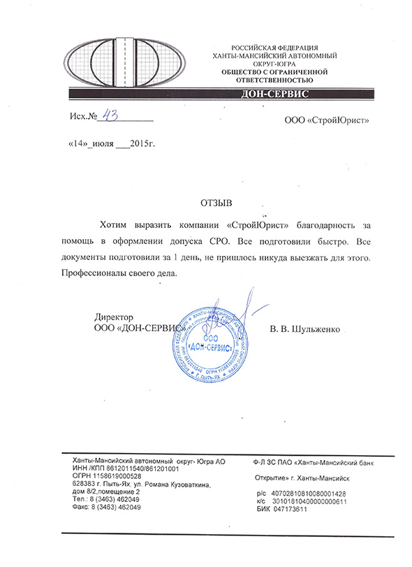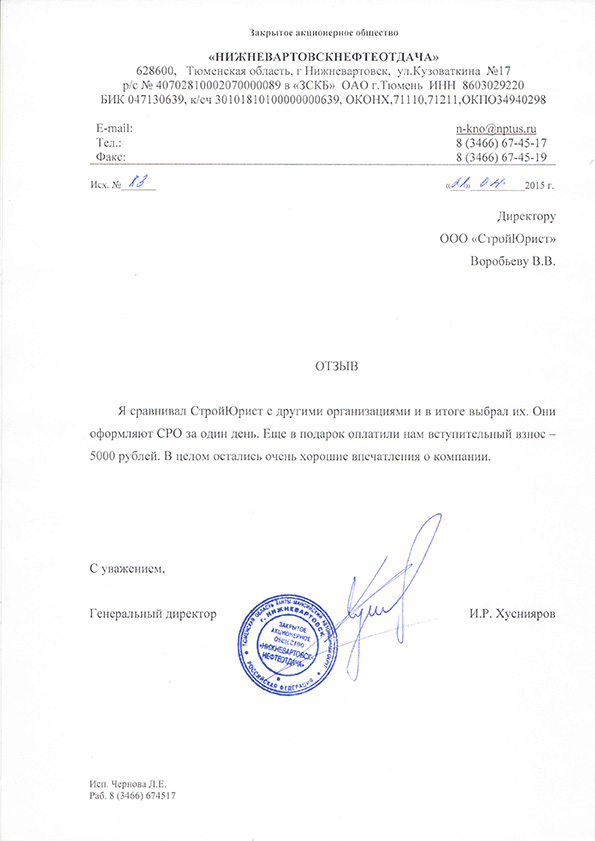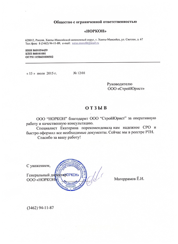 Отзывы клиентов "СтройЮрист" по вступлению в СРО в Балашихе