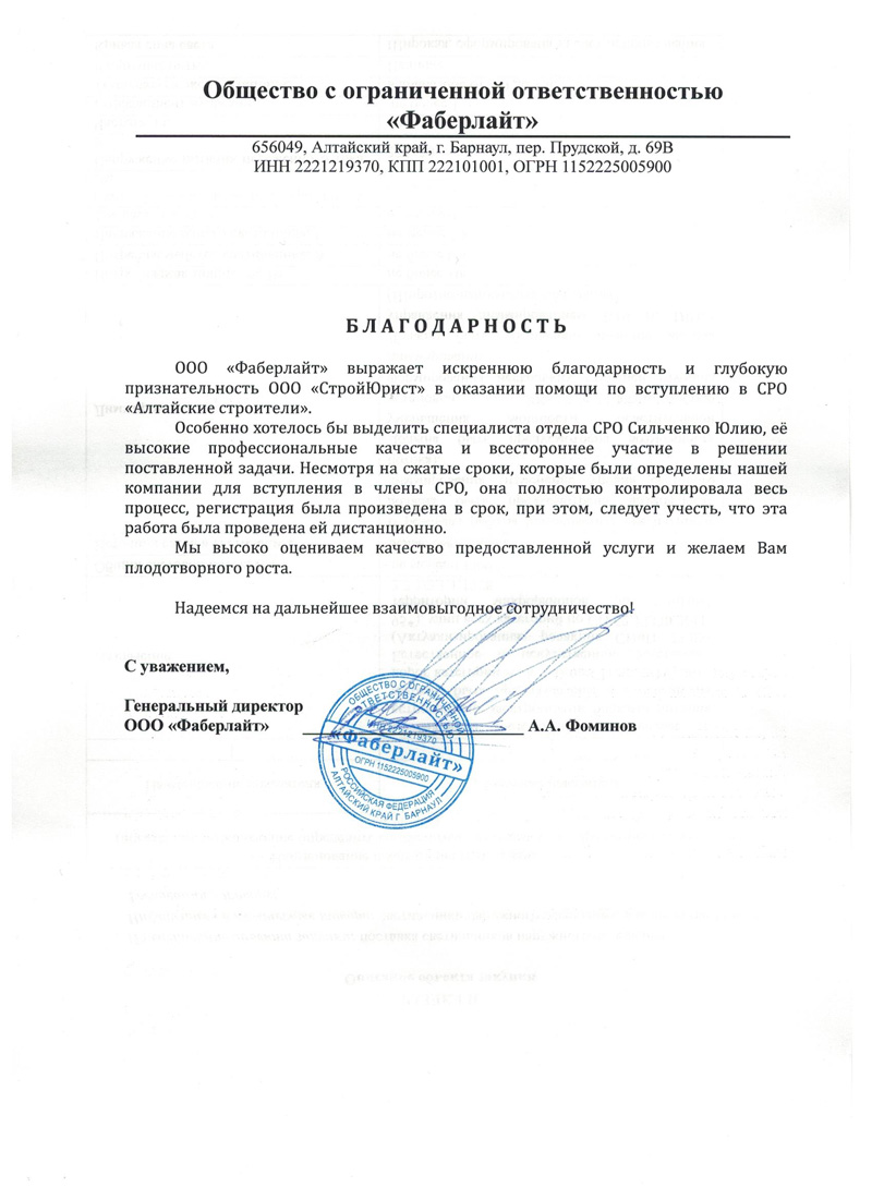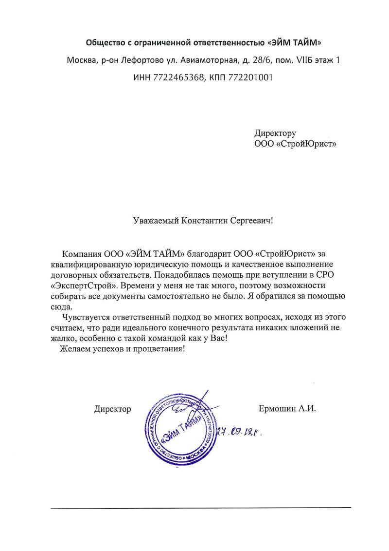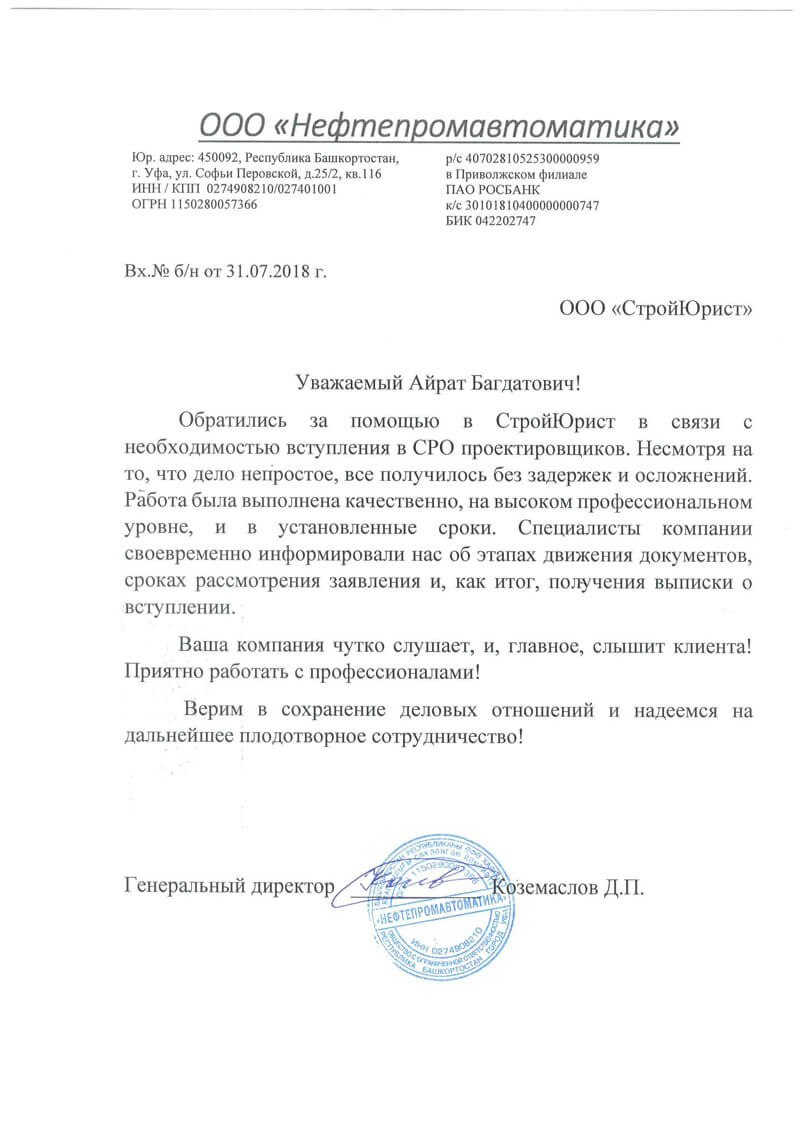 Отзывы клиентов "СтройЮрист" по вступлению в СРО в Балашихе