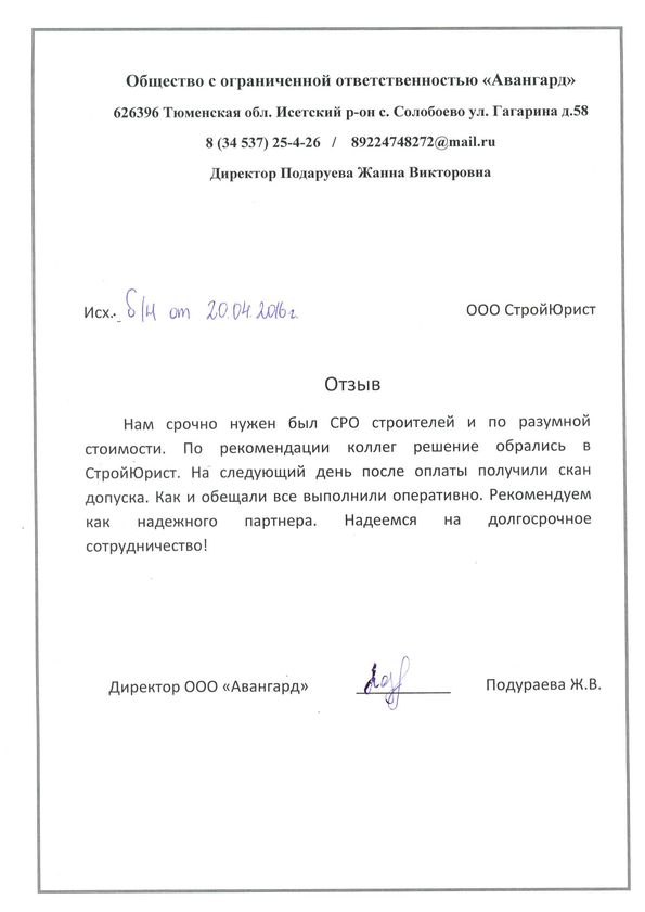 Отзывы клиентов "СтройЮрист" по вступлению в СРО в Балашихе