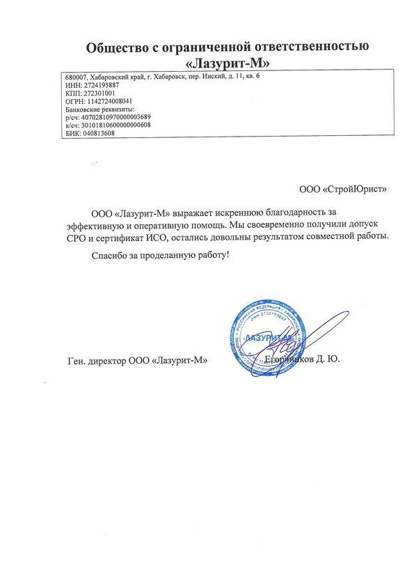 Отзывы клиентов "СтройЮрист" по вступлению в СРО в Балашихе